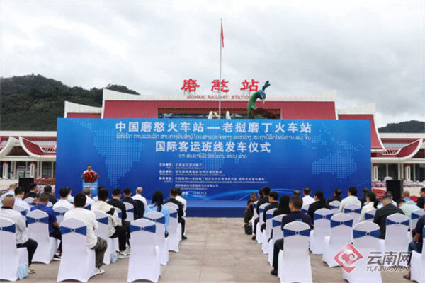11月3日,在中老双方代表共同见证下,中老铁路磨憨站至磨丁站国际客运班线发车仪式在中国磨憨火车站站前广场举行,中老双方首条以公交模式运营的国际客运线路开通。