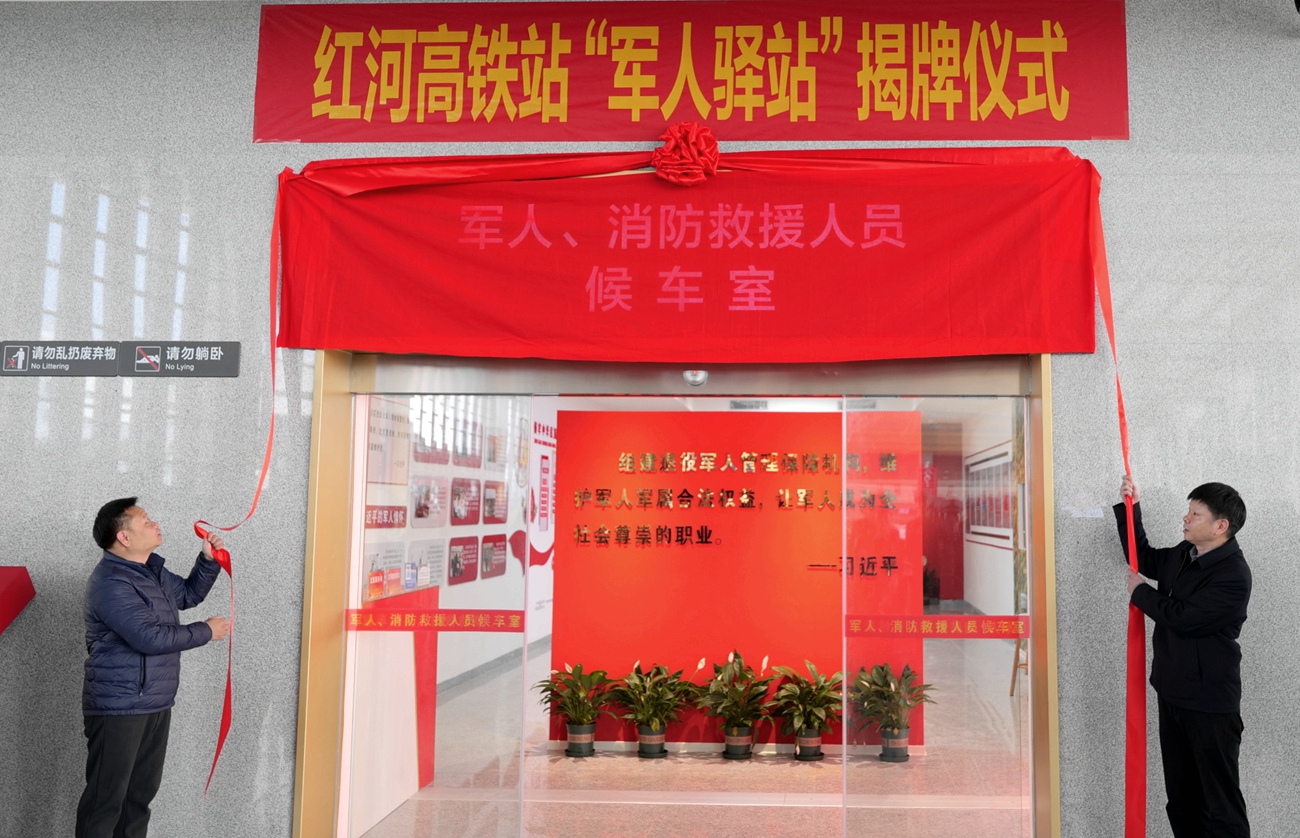 红河高铁站“军人驿站”揭牌仪式现场。