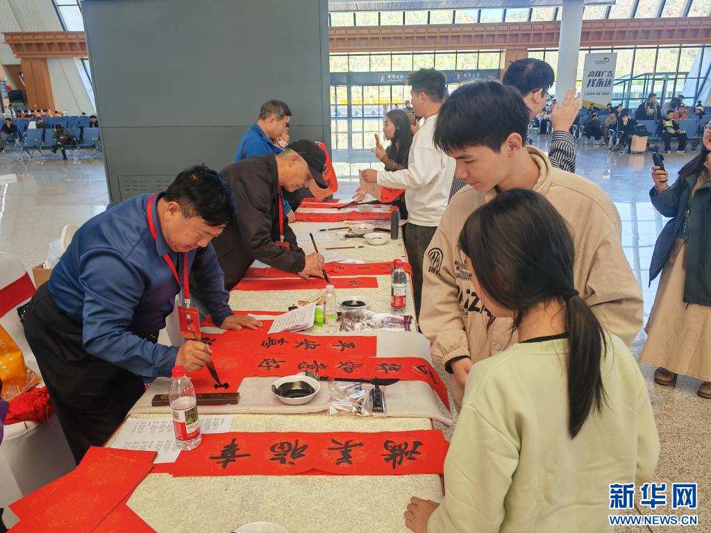 图为书法家现场为旅客写春联。新华社记者 浦超 摄