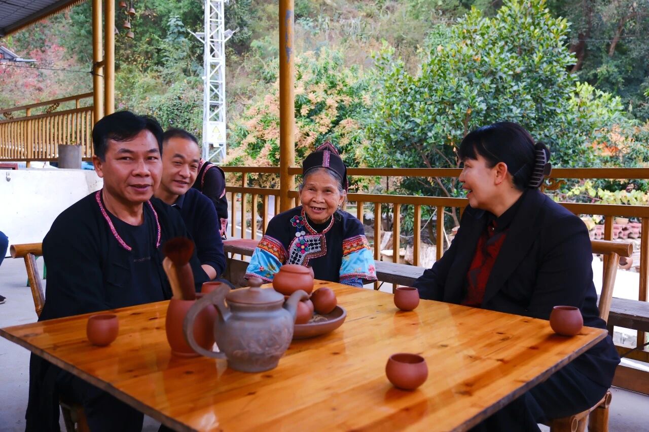 罗萍在元阳看望慰问云南省民族团结进步先进个人阮国林(左一)