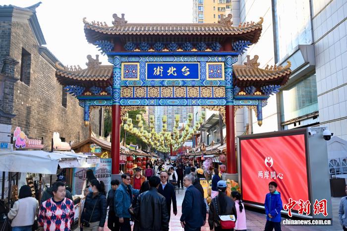 图为春节假期期间,昆明台北街热闹非凡。李嘉娴 摄