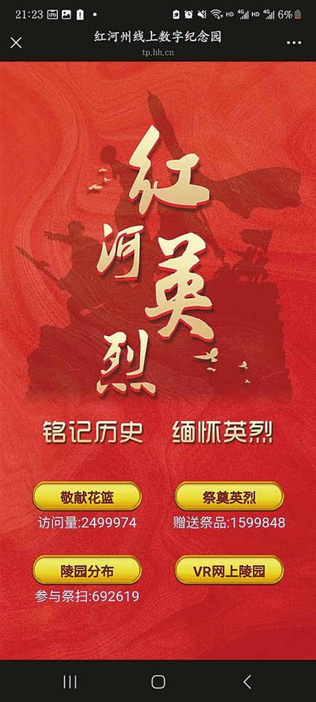 本网讯 为弘扬英烈精神、倡导文明绿色祭奠,由红河州退役军人事务局统筹策划、红河州融媒体中心提供技术支持的红河州“VR网上陵园”于今年清明假期上线试运行。