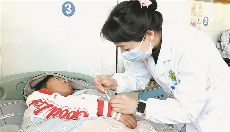 泸西县人民医院儿科医生坚守岗位,为患者治疗。