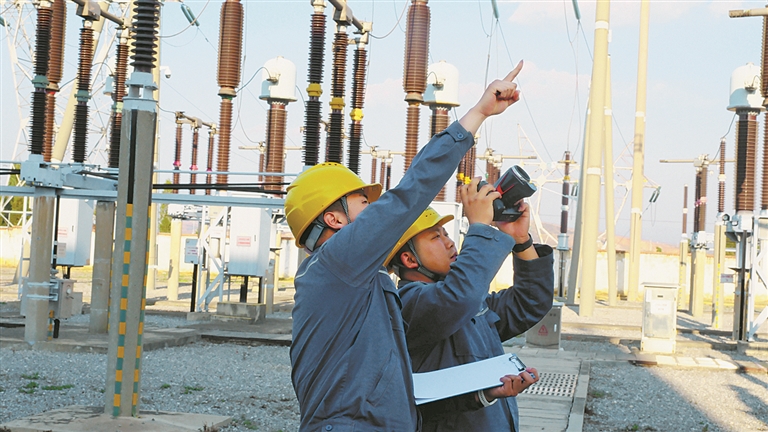 南方电网红河供电局电力工人进行红外线测温。