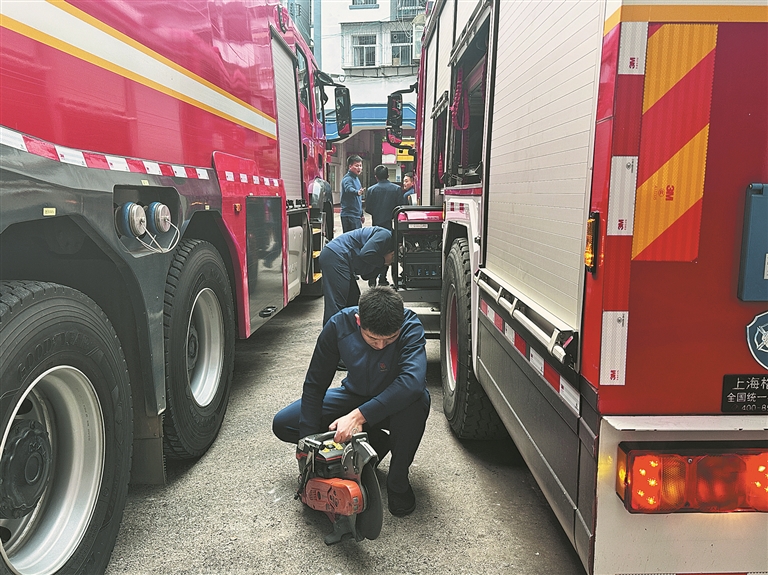 个旧市消防救援大队金湖南路消防救援站的消防员坚守执勤一线。