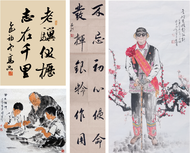 通过学习,会员们深受感动和激励,并纷纷挥毫泼墨,尝试以艺术创作的形式表达对先进典型的崇高敬意。协会会员王爱国、杨品、孔祥发、黄永顺、高品等人,以红河州本次荣获表彰的3个先进集体和5名先进个人为题材,精心创作了《老骥伏枥志在千里》《育学温情》等共计17幅主题鲜明、情感真挚的作品。