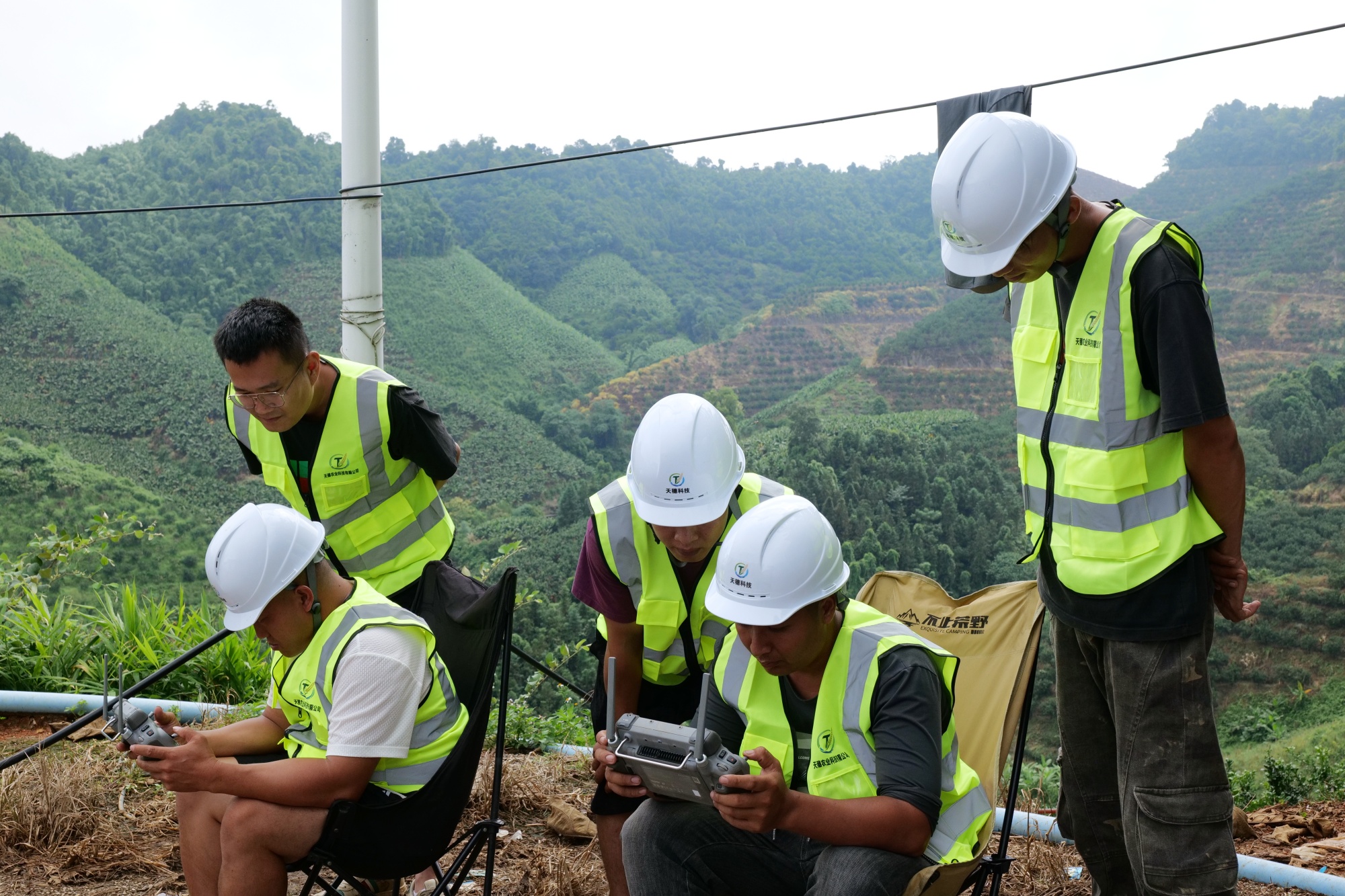 飞防队操作无人机。
