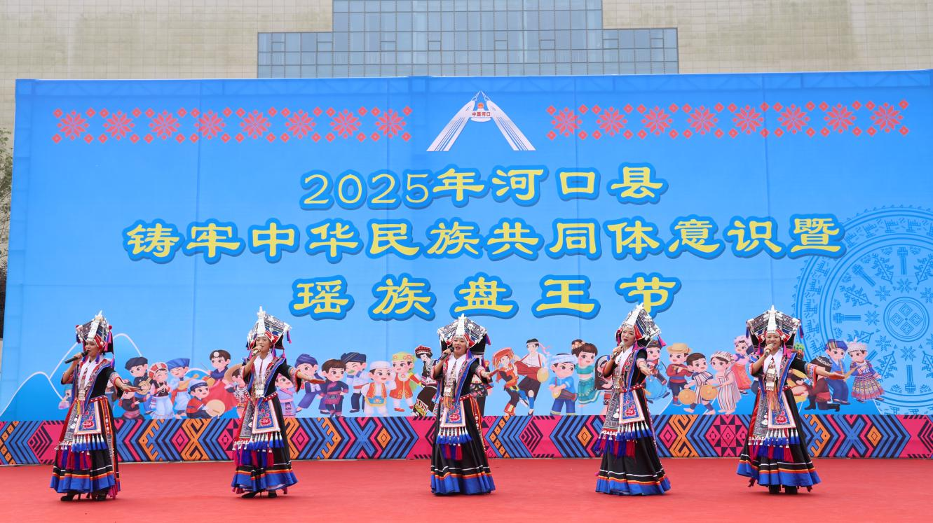仪式结束后,民族团结文艺汇演接续上演。瑶族舞蹈《欢迎你到河口来》拉开演出序幕,独唱《瑶族舞曲》用悠扬旋律诠释了民族音乐的魅力,舞蹈《布依圣境》展示了独特的民族风情……各族演员同台献艺,在《美丽瑶山欢迎您》的舞蹈表演中,勾勒出各民族相互欣赏、和谐共生的动人图景。随后,特色盘王宴开席,瑶家肉粽、剁鸡糁、连渣捞等佳肴,让宾客在味蕾体验中感受瑶族饮食文化的魅力。
