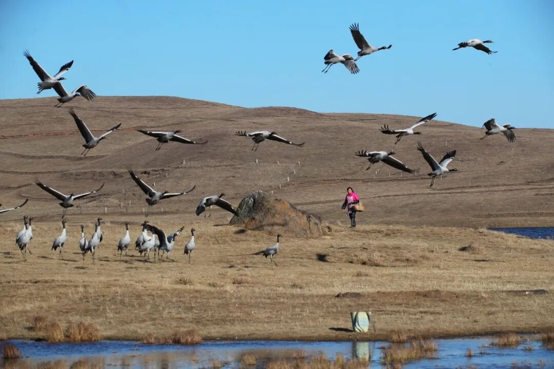 标志着今年黑颈鹤的越冬迁徙