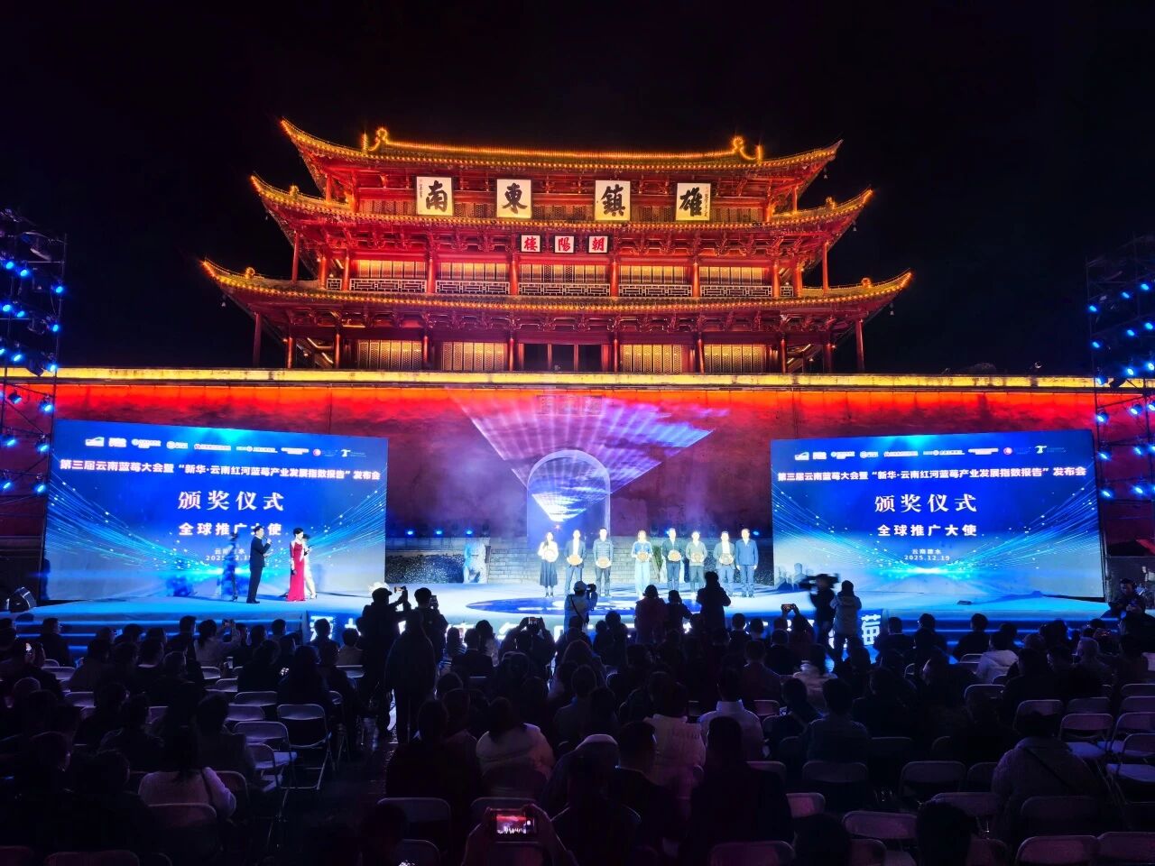 州委书记赵瑞君出席开幕式并为红河蓝莓区域公用品牌全球推广大使颁奖,州委副书记、州委宣传部部长应亥宗致辞并宣布开幕。