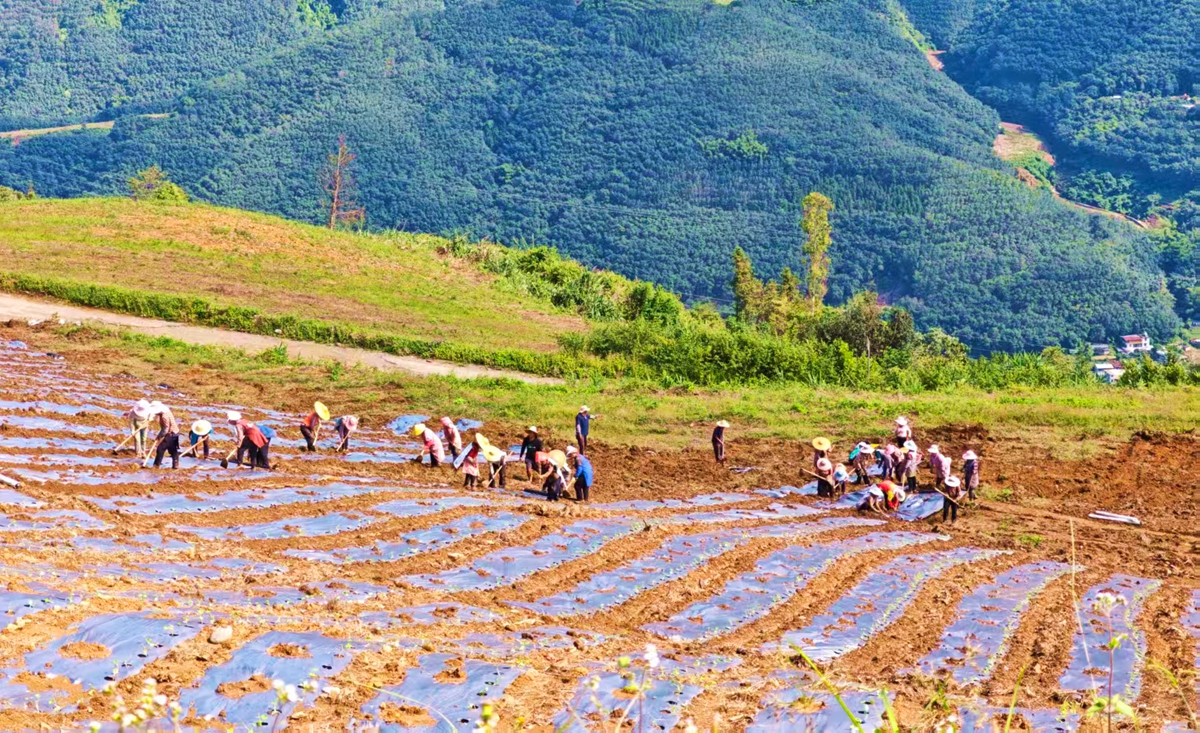 在产业发展背后,基层党组织的“红色引擎”持续发力。大黑山镇创新构建“党支部+企业+农户”三位一体协同模式,党支部主动扛起“先锋队”大旗:一边统筹土地流转,调配机械深耕翻垦、精准挖穴,为企业运营扫清障碍;一边整合项目资金,完善灌溉、道路等基础设施,让政策红利与资源要素源源不断向基地汇聚,将党的组织优势实实在在转化为产业发展的强劲动能。