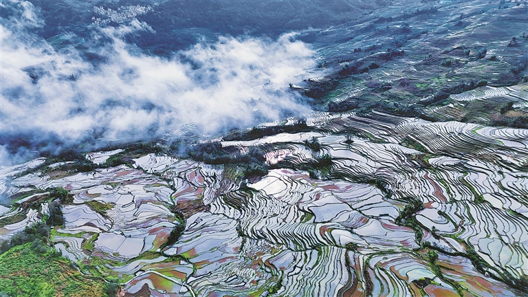 元阳县箐口梯田航拍。 张艳 摄