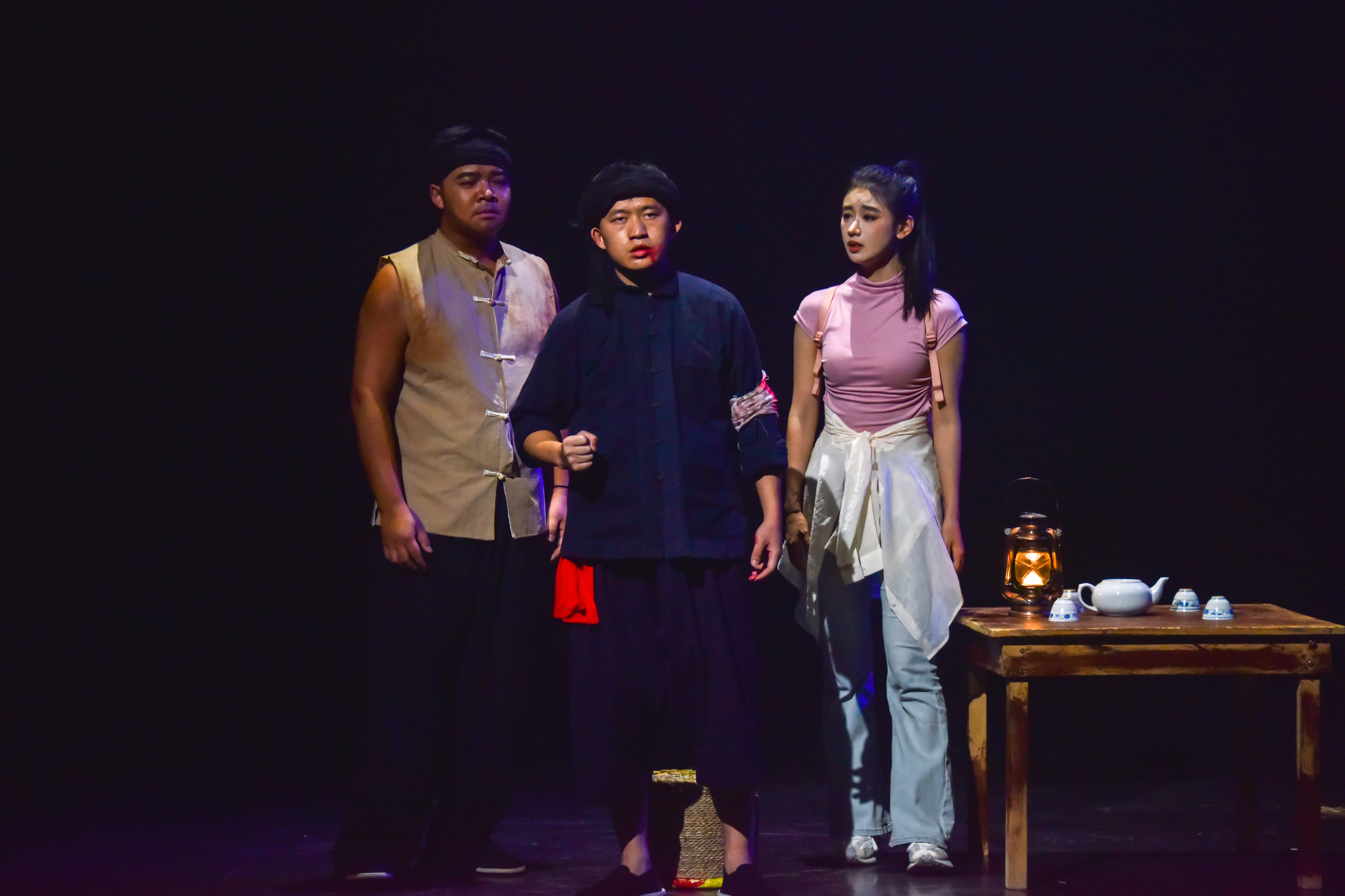 在历史切片的选择与呈现上,剧作精准捕捉了人字桥百年沧桑中的关键节点,赋予其强烈的戏剧张力和象征意义。第一幕“故人”中邹氏三兄弟在悬崖上的相继殒命,其惨烈程度令人窒息,艺术地再现了“每米钢轨下牺牲12个鲜活生命”的沉重历史。这一幕不仅是对殖民工程残酷性的控诉,更是对底层劳工群体坚韧、牺牲精神的悲壮礼赞——正是无数个“邹氏兄弟”的血肉,真正托举起了这座钢铁巨桥的脊梁。第二幕“故事”将镜头转向革命年代,铁路工人李石头、苗族反抗者熊有以及那位无名的共产党青年在湾塘火车站上演的生死救援与牺牲,虽然笔墨相对浓缩,却极具象征性地勾连起人字桥区域(如1928年中共云南一大在蒙自芷村查尼皮的召开)在革命洪流中的位置。当熊有誓言寻找共产党“为苦难同胞点燃希望之火”,革命火种便在血色中完成了接力,预示着屏边各族儿女终将迈向解放与新生的征途。第三幕“故土”则聚焦和平年代的守护与传承。守桥人杨桥生及其家族三代的命运(外公修桥殒身、四叔守桥致残、自身面临职业与情感危机),深刻诠释了“家园”的沉重分量。得知中越贸易重启后,杨桥生“先辈守住历史,我要守好未来”的宣言,标志着守护从被动承受转向主动担当,完成了精神内核的升华。