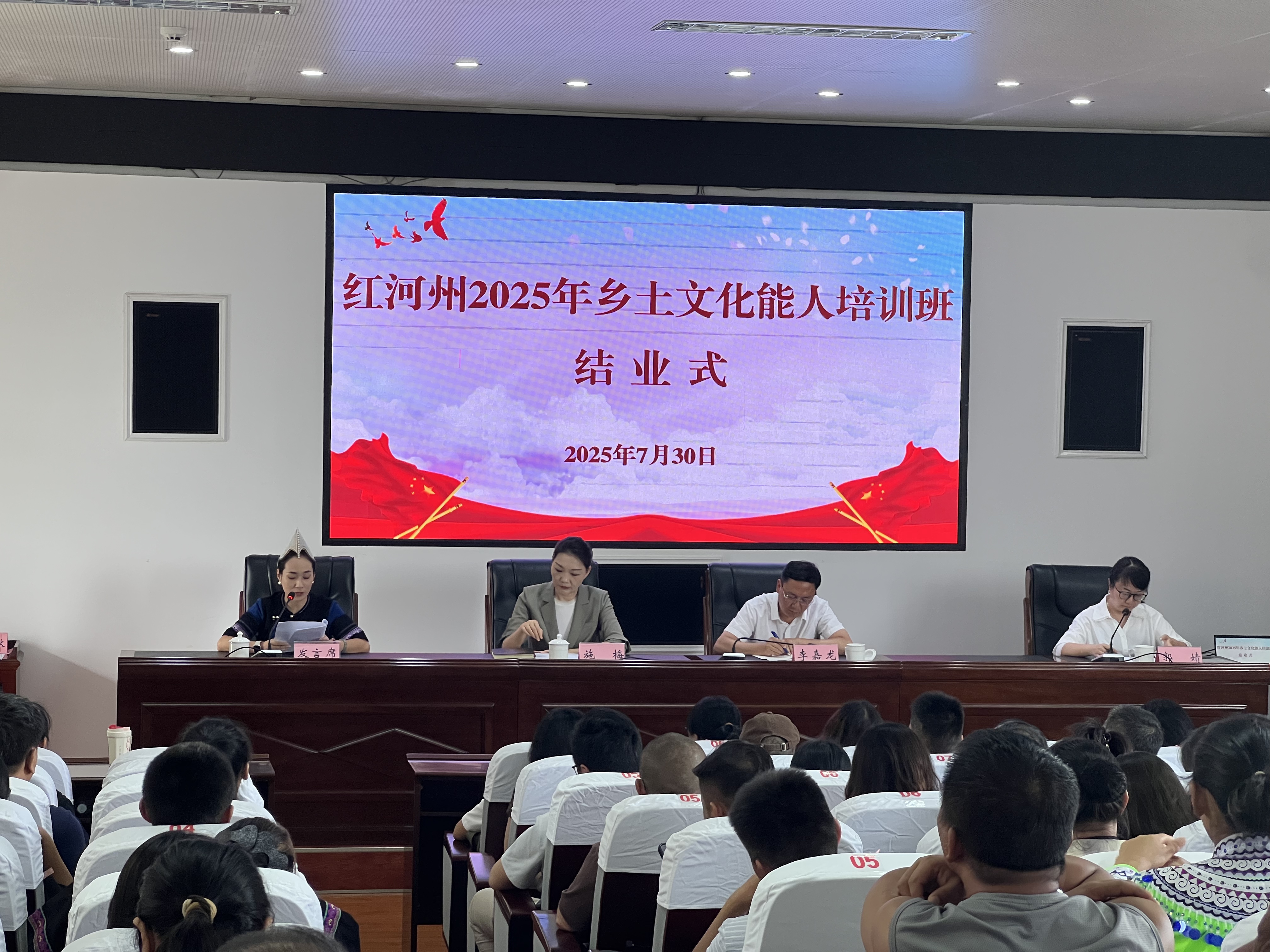 7月28日至30日,由中共红河州委宣传部主办的红河州2025年乡土文化能人培训班在蒙自举办。培训旨在培育打造一支讲政治、有情怀、有专长、有成绩的乡土文化能人队伍,提升基层公共文化服务能力,将红河州丰富的文化资源优势转化为文化发展优势,为深入推进文化强州建设注入强劲动力。