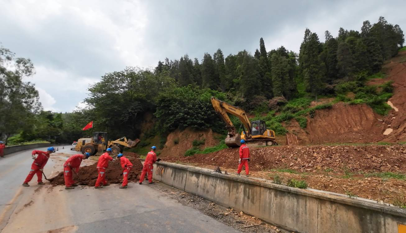 在地震道路交通应急救援有条不紊地进行时,气象部门紧急发布暴雨红色预警信号,震区持续出现强降雨天气。红河州交通运输局立即与气象部门联合会商,研判降雨对灾区的影响,通过1262预警机制,向高速公路运营单位、公路部门、抢险救援队伍通报预警信息。大雨造成大面积水毁、边坡坍方、泥石流,现场指挥部下达命令,组织各方力量开展汛期抢险救援行动。