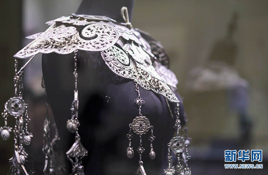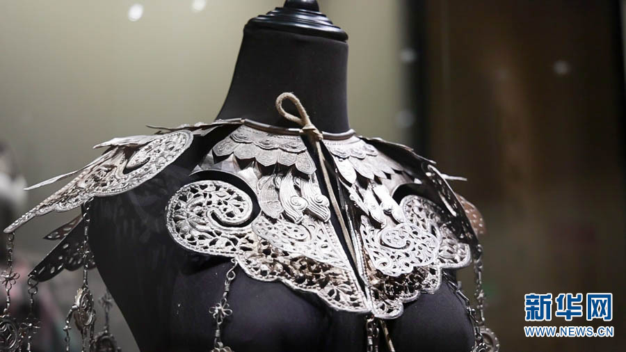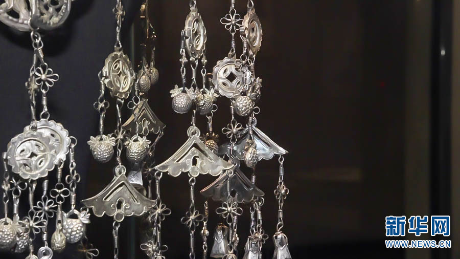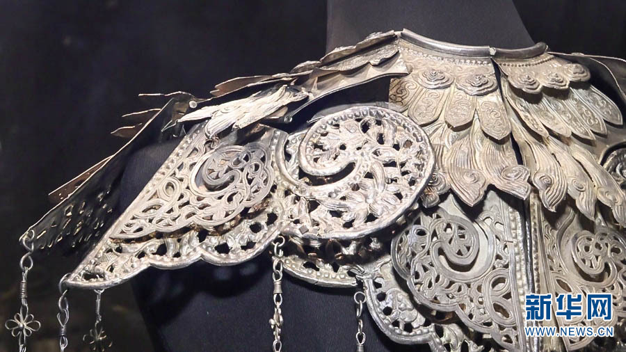 壮族服饰中的肩饰往往使用银质,是少女出嫁时的贵重饰物。云南省博物馆馆藏的这件清末壮族银披肩,主体部分呈八片放射状,银片层叠,合为如意祥云图案,四周则垂吊着花草、动物等图案组成的长穗,穿着时可随身体的摆动摇曳铃响,工艺复杂,精妙绝伦。(新华网 念新洪/文)
