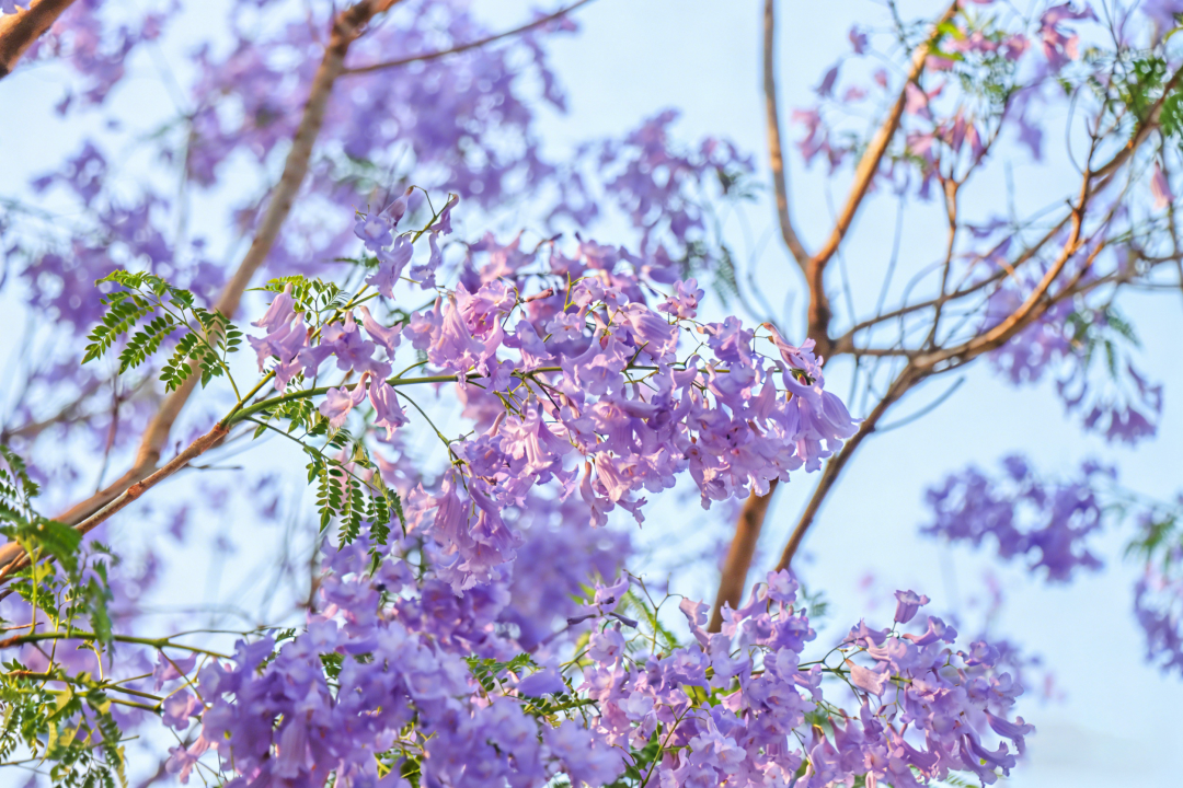 清明时节,滇南开远城被一场盛大的紫色温柔包裹。蓝花楹如期盛放,如云似霞的花瀑垂落枝头,整座城市被晕染成梦幻的紫雾仙境。