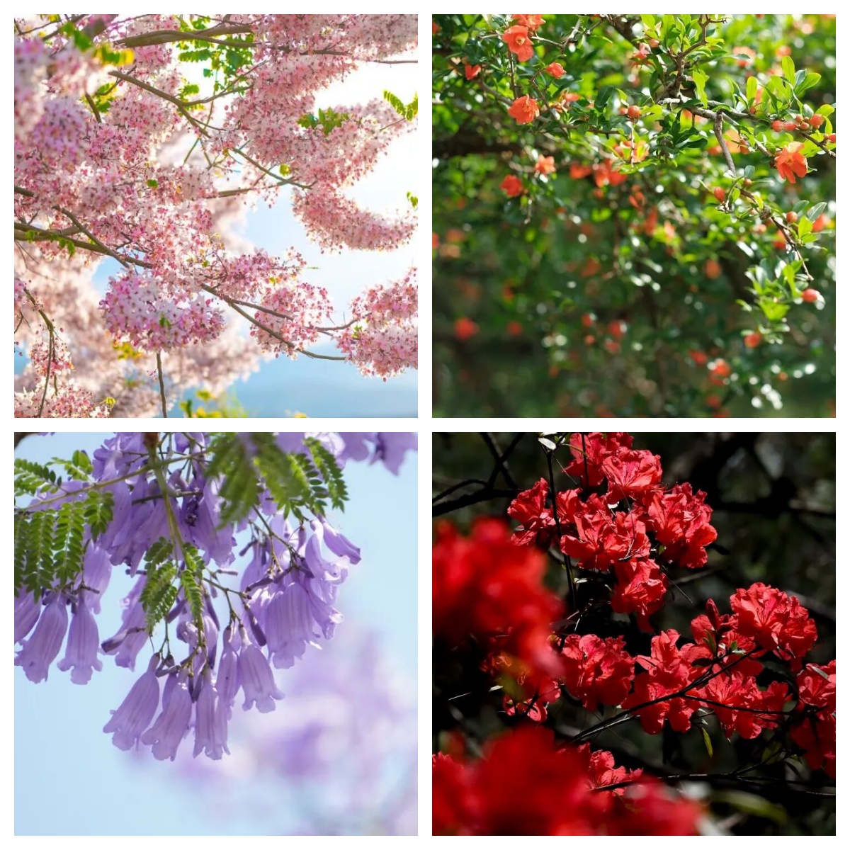 4月的红河百花竞放处处皆是春色在一众热闹的花事中最夺目耀眼的当数四种蓝花楹的紫雾神黄豆的粉霞杜鹃花的山野石榴花的红火它们串联起了整个春天的温柔与热烈把四月的红河拼成了一幅四色花海
